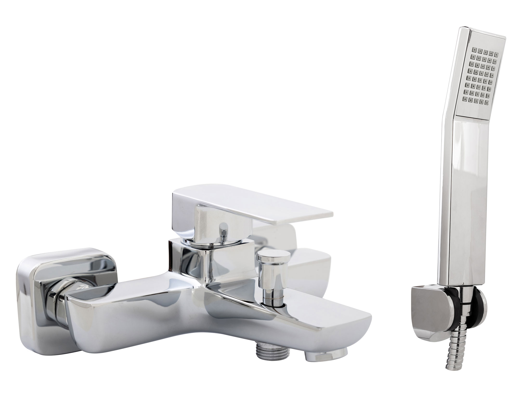 Miscelatore vasca in ottone completo di doccia, flessibile, supporto